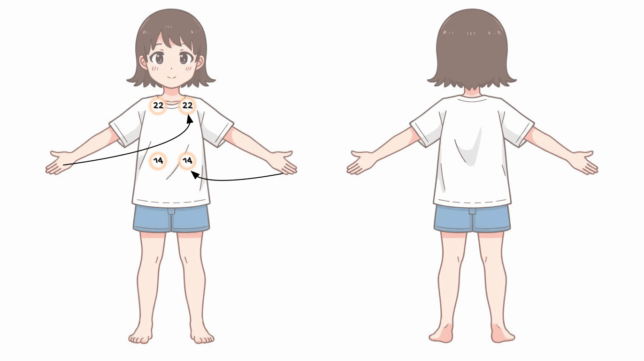 - SELs 14-22: Place your left hand on the left 14 and the right hand on the left 22. Reverse for the right side: right hand on right 14 and left hand on right 22